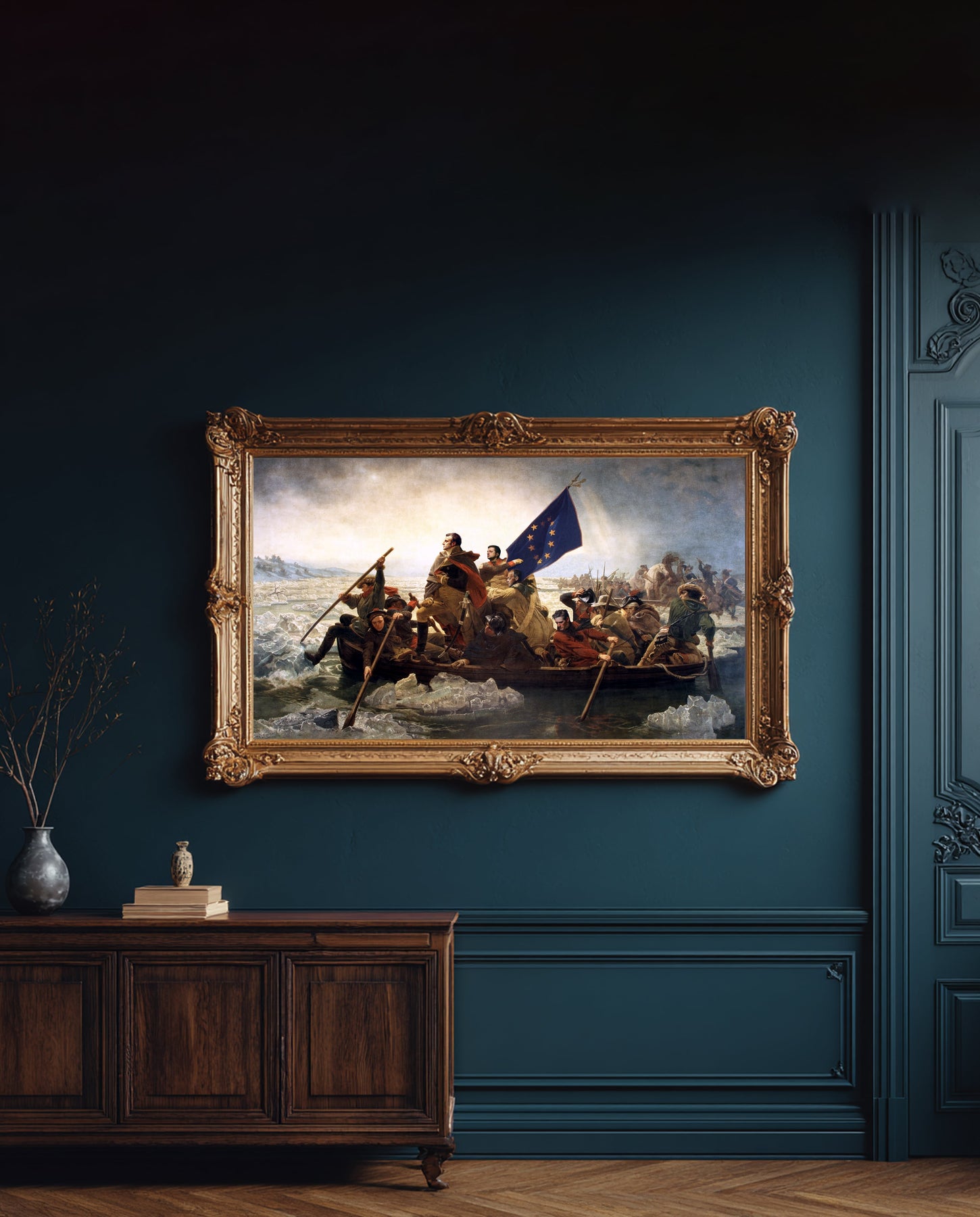 A contemporary reinterpretation of classical history painting, The Crossing of Europe captures a decisive moment of leadership, unity, and movement.