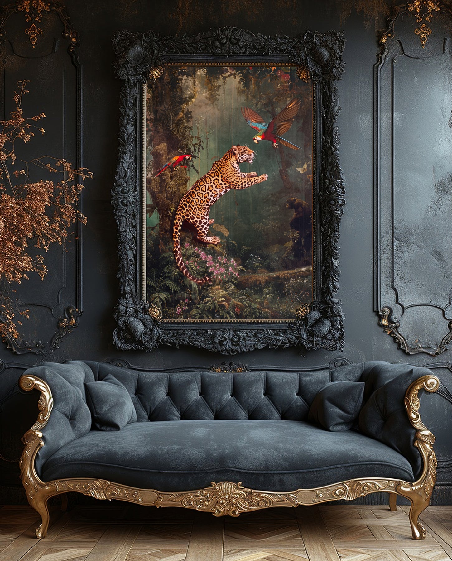 A vivid celebration of wild energy — Jungle Pursuit captures the power and grace of nature in motion, bringing the untamed spirit of the rainforest into your space.