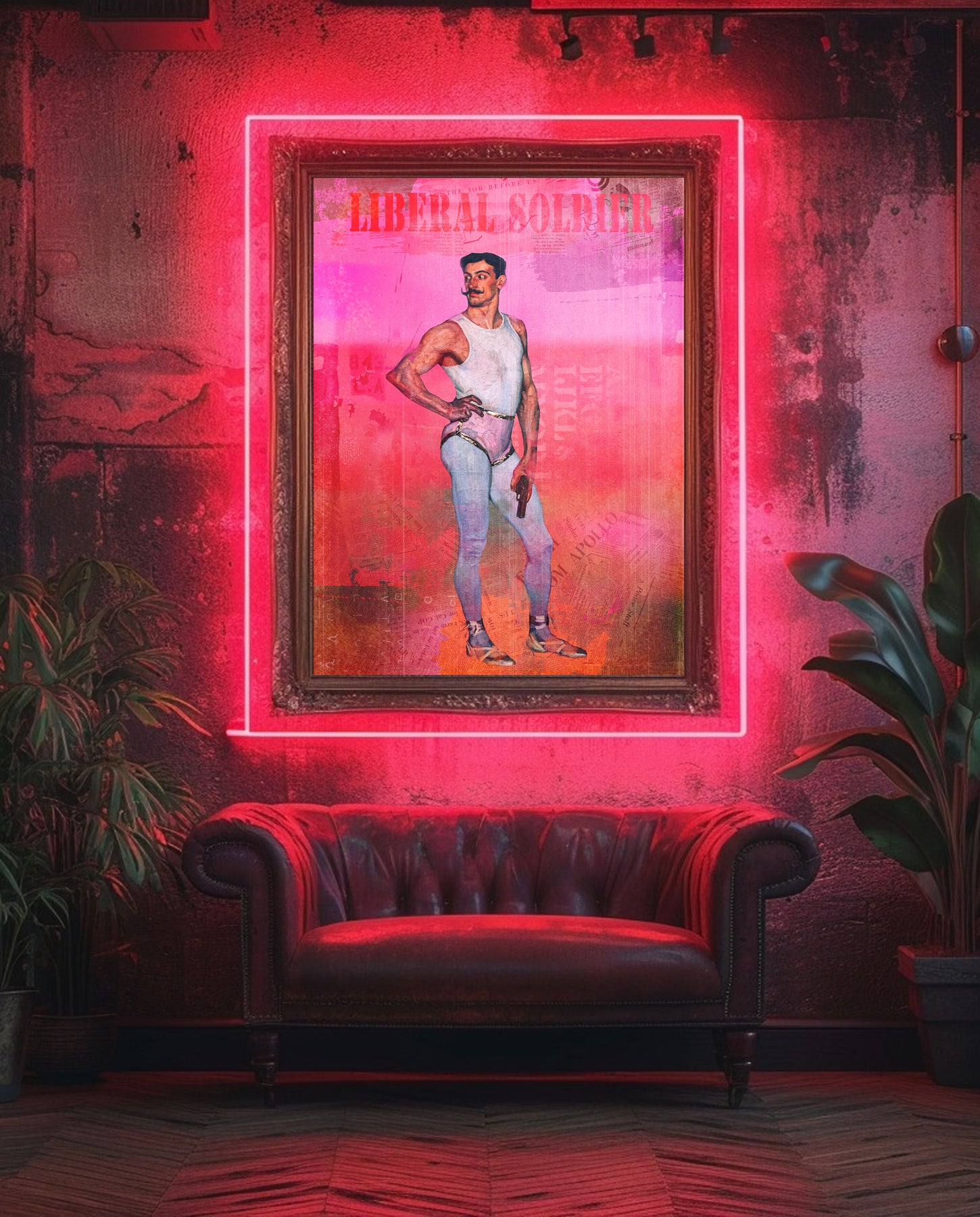 The Liberal Soldier juxtaposes classical elegance with contemporary ideas of freedom and conflict. A bold commentary on art, power, and identity — printed on museum-grade Master’s Edition paper.
